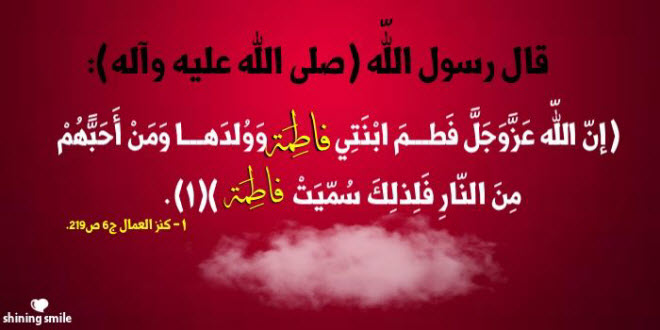 20- قال رســـول اللّه (صلى الله عليه وآله): (إنّ اللّهَ عَزَّوَجَلَّ فَطـــَمَ ابْنَتِي فاطِمَـــة وَوُلدَهـــا وَمَنْ أَحَبًّهُمْ مِنَ النّارِ فَلِذلِكَ سُمّيَتْ فاطِمَة)(20).