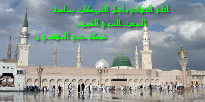 أسرة شبكة محبي وأنصار الإمام المهدي ع تتقدم بأسمى الآيات والتبريكات إلى مقام ولي الله الأعظم صاحب العصر والزمان والمراجع العظام والأمة الإسلامية بمناسبة المبعث النبوي الشريف.