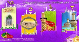 أسرة شبكة محبي وأنصار الإمام المهدي ع تزف أسمى آيات التهاني والتبريكات إلى مقام ولي الله الأعظم ومراجع التقليد والأمة الإسلامية بمناسبة مواليد أبطال كربلاء – الإمام الحسين بن علي (الشهيد) ، أبو الفضل العباس، والإمام علي بن الحسين السجاد عليهم السلام. – سيرة الإمام الحسين بن علي الشهيد (عليهما السلام) (بشكل مختصر) – سيرة الإمام الحسين بن علي الشهيد …